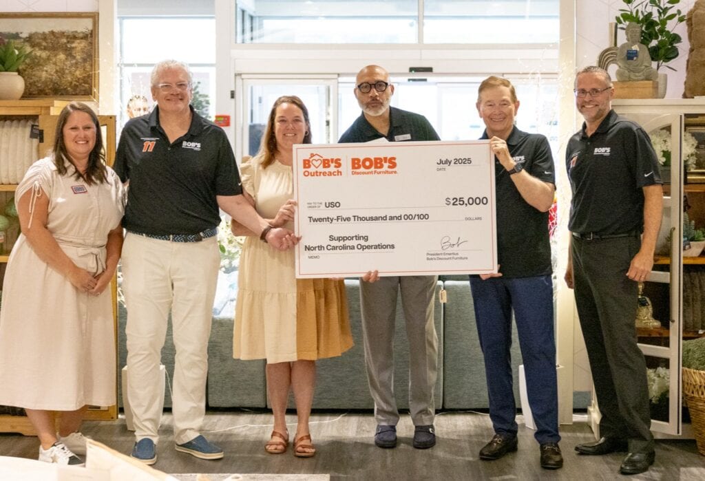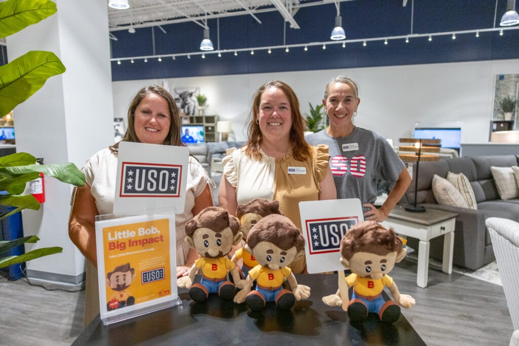 At Bob’s Discount Furniture, giving back to our communities is part of who we are—and few causes are closer to our hearts than supporting those who serve. Our partnership with USO North Carolina began the moment we opened our first store in the state, when we proudly donated $25,000 to help advance their mission of keeping service members connected to family, home, and country.