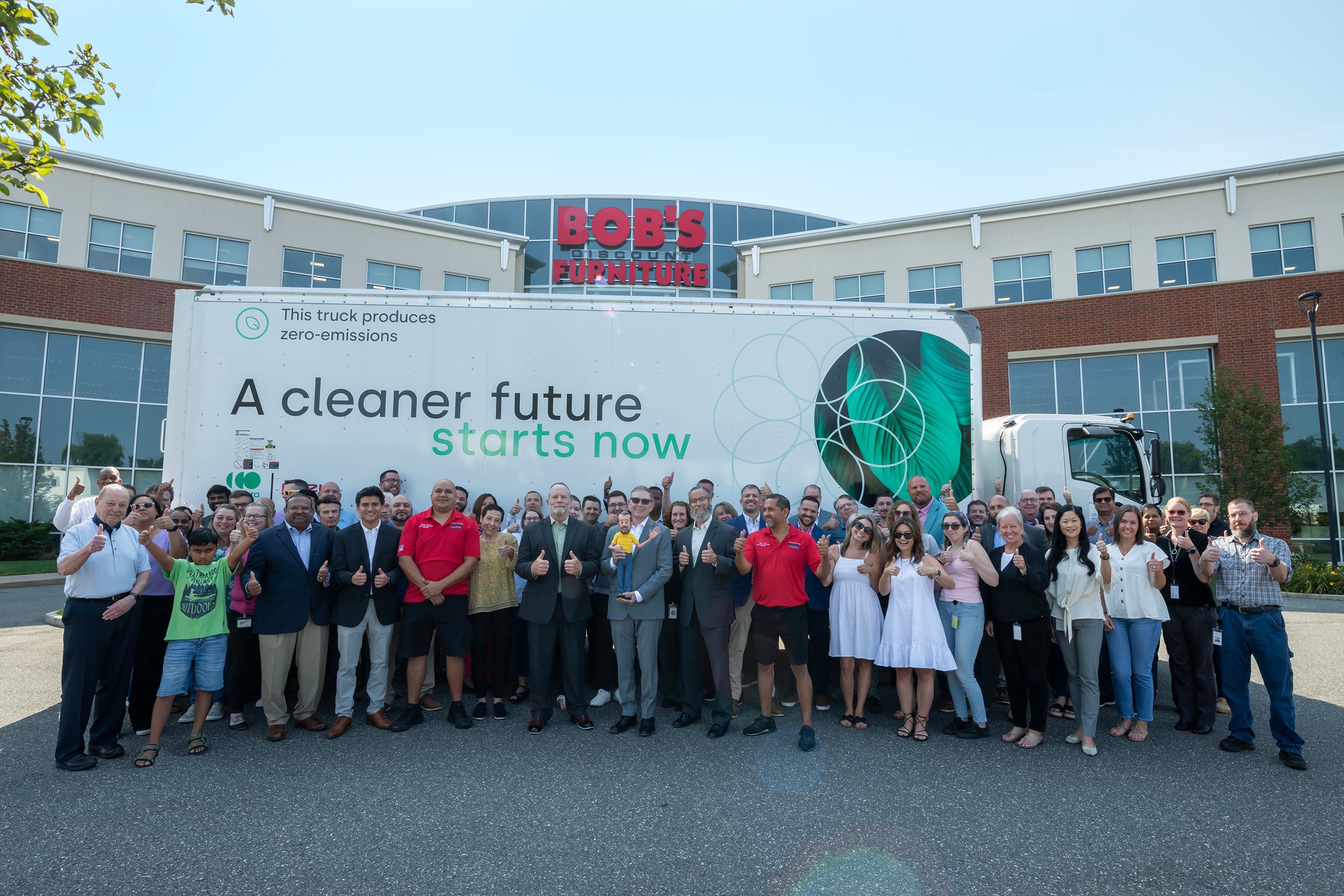 On August 14, 2024, the companies held a special ribbon-cutting ceremony to commemorate the first EV truck they’ve partnered on. The well attended event was held outside of Bob’s Discount Furniture’s home office in Manchester, CT.