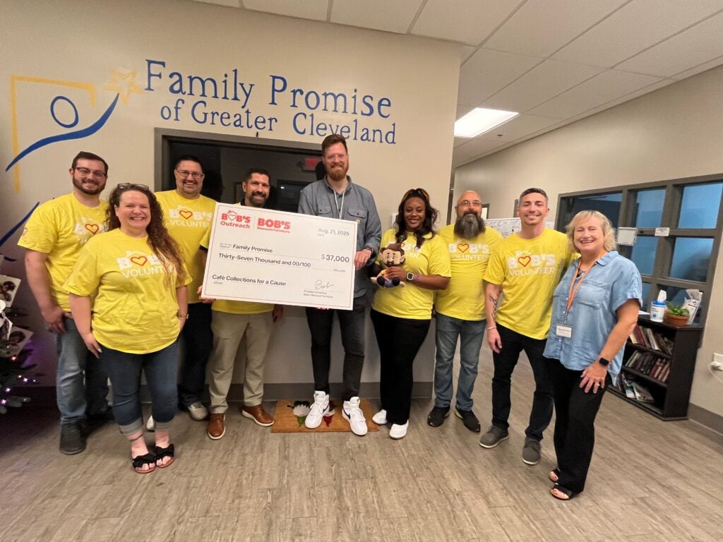 Bob’s presented a donation to Family Promise for $37,000 for donations collected during their Café Collections for a Cause campaign in 2025, which included a dollar-for-dollar match from Bob’s as well as packed school supplies for children served by Family Promise of Greater Cleveland.