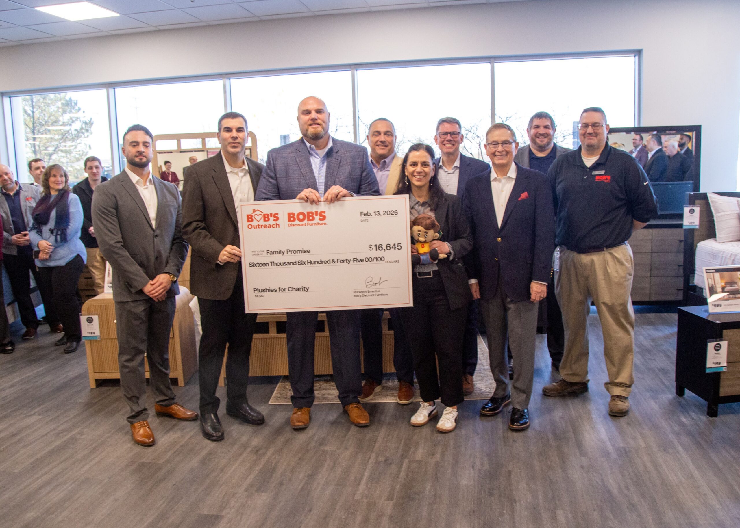 Bob’s Discount Furniture proudly celebrated a major milestone in its partnership with Family Promise with a $16,645 donation raised through the sale of Little Bob plushies for charity. The donation was presented during the grand opening of Bob’s new store and distribution center in Solon, Ohio, marking a meaningful moment of giving back to the local community.