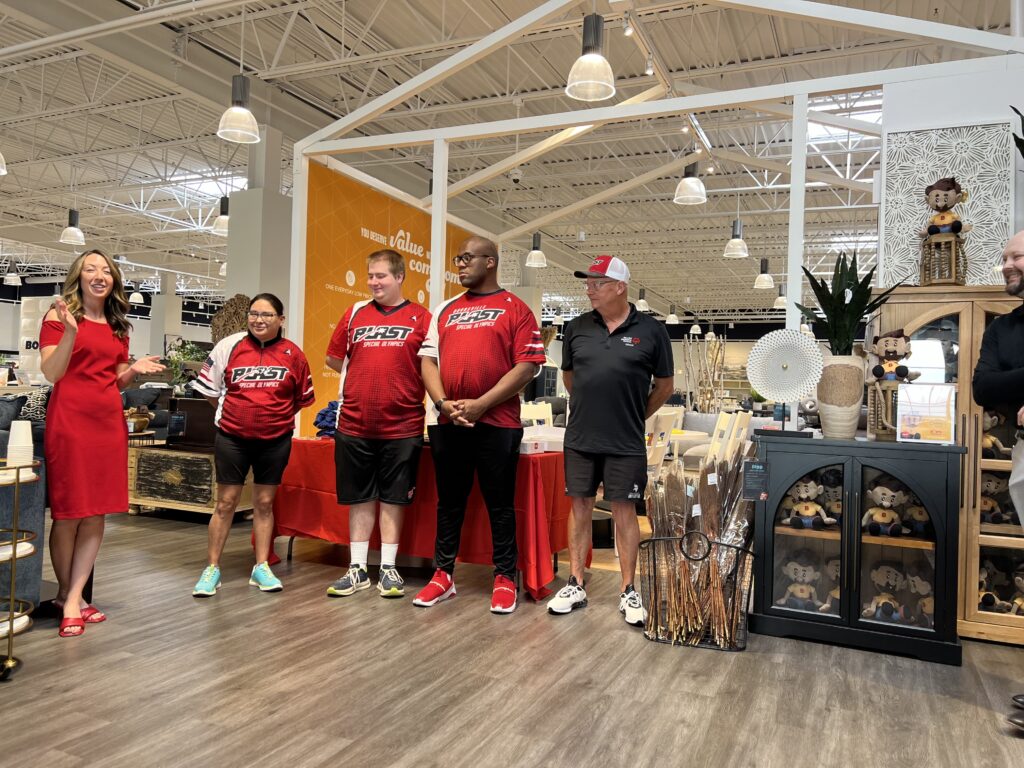 Athletes from Special Olympics Minnesota visited Bob’s new Burnsville store to accept the donation.