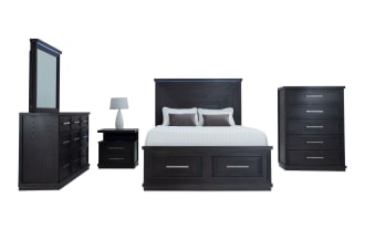 Name | Cosmopolitan 5 Piece King Black Storage Platform Bedroom Set |