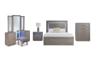 | Name | Cosmopolitan 5 Piece King Gray Storage Platform Bedroom Set with Vanity |