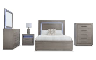 Cosmopolitan 5 Piece California King Gray Storage Platform Bedroom Set with Vanity $3,298.00