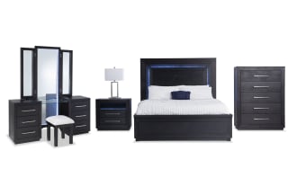 Name | Cosmopolitan 5 Piece California King Black Storage Platform Bedroom Set with Vanity |