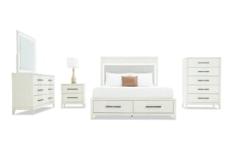 | Name | Scarlett 5 Piece Queen White & Oak Storage Platform Bedroom Set with Vanity |