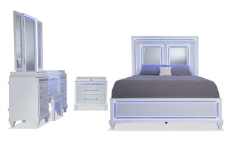 | Name | Glamour 4 Piece King White Panel Bedroom Set with Vanity |