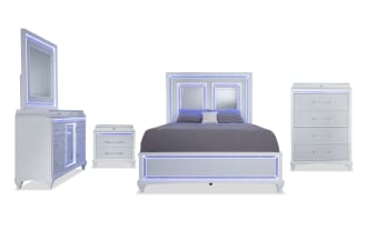 | Name | Glamour 5 Piece King White Panel Bedroom Set |