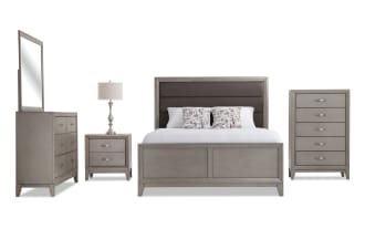 | Name | Tremont 5 Piece King Gray Panel Bedroom Set |