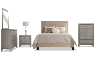 | Name | Tremont 5 Piece Queen Gray & Beige Upholstered Bedroom Set |