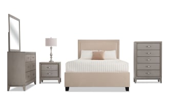 | Name | Tremont 5 Piece Full Gray & Beige Upholstered Storage Bedroom Set |