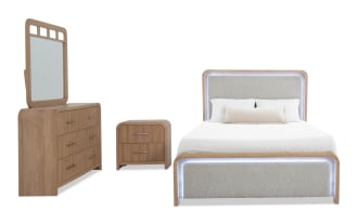 | Name | Calvin 4 Piece Queen Light Brown & Oatmeal Upholstered Panel Bedroom Set |