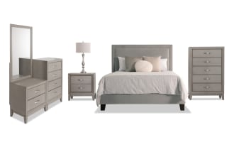 | Name | Tremont 5 Piece Full Gray Upholstered Bedroom Set with Chesser |