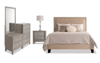 | Name | Tremont 4 Piece Twin Gray & Beige Upholstered Bedroom Set with Chesser |