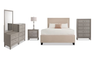 | Name | Tremont 5 Piece Twin Gray & Beige Upholstered Storage Bedroom Set with Chesser |