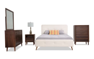 | Name | Bettie 5 Piece King Brown & Cream Faux Leather Upholstered Platform Bedroom Set |