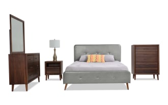 | Name | Bettie 5 Piece King Brown & Charcoal Faux Leather Upholstered Platform Bedroom Set |
