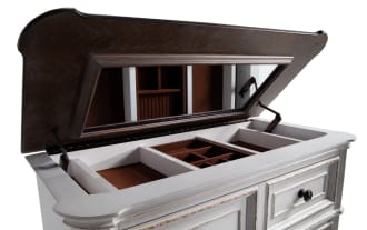 Features | <ul class='product-features_list'><li class='product-features_list_value'><span class='product-features_list_value_info'>Beveled</span></li></ul><ul class='product-features_list'><li class='product-features_list_value'><span class='product-features_list_value_info'>Cedar Lined Bottom Drawer(s)</span></li></ul><ul class='product-features_list'><li class='product-features_list_value'><span class='product-features_list_value_info'>Dovetail Joints</span></li></ul><ul class='product-features_list'><li class='product-features_list_value'><span class='product-features_list_value_info'>Drawer Glides</span></li></ul><ul class='product-features_list'><li class='product-features_list_value'><span class='product-features_list_value_info'>Felt Lined Top Drawer(s)</span></li></ul><ul class='product-features_list'><li class='product-features_list_value'><span class='product-features_list_value_info'>Jewelry Tray</span></li></ul><ul class='product-features_list'><li class='product-features_list_value'><span class='product-features_list_value_info'>Nailhead Detailing</span></li></ul><ul class='product-features_list'><li class='product-features_list_value'><span class='product-features_list_value_info'>Tufted</span></li></ul> |