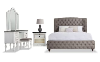 Name | Scarlett 4 Piece King White & Oak Upholstered Bedroom Set with Vanity |