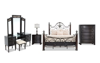 | Name | Regency 5 Piece King Cherry & Brown Metal Panel Bedroom Set with Vanity |