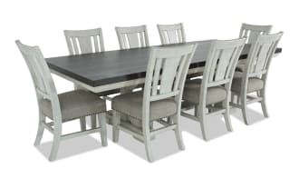 Name | Cosmopolitan 8 Piece Black & Gray Upholstered Extendable Dining Set with Storage Bench |