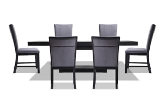| Name | Cosmopolitan 7 Piece Black & Gray Upholstered Extendable Dining Set |