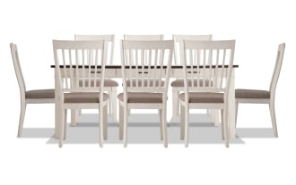 Name | Montana 9 Piece White & Beige Upholstered Dining Set |