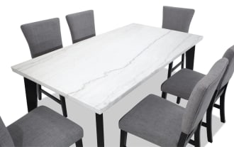 | Name | Elm 7 Piece Espresso, Marble & Light Gray Upholstered Dining Set |