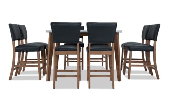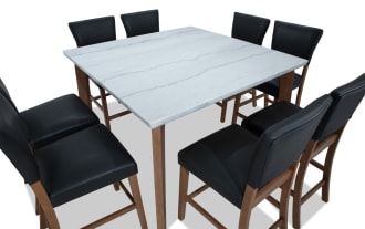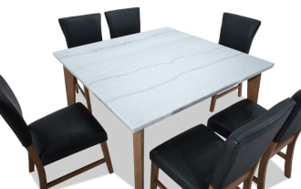 Name | Elm 7 Piece Espresso, Marble & Gray Faux Leather Counter Height Dining Set |