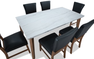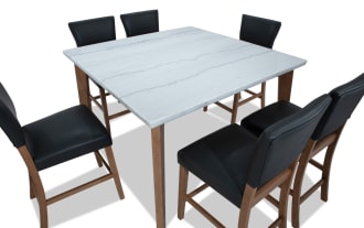 Name | Elm 7 Piece Espresso, Marble & Light Gray Upholstered Counter Height Dining Set |
