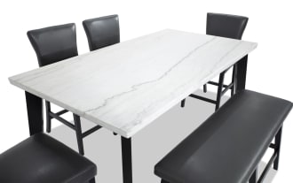 | Name | Elm 6 Piece Espresso, Marble & Gray Faux Leather Counter Height Dining Set with Bench |