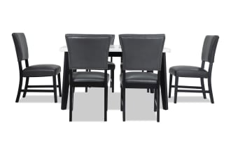 | Name | Elm 7 Piece Espresso, Marble & Gray Faux Leather Dining Set |