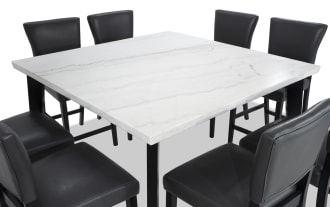 | Name | Elm 9 Piece Espresso, Marble & Gray Faux Leather Counter Height Dining Set |