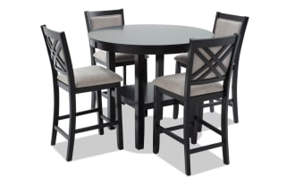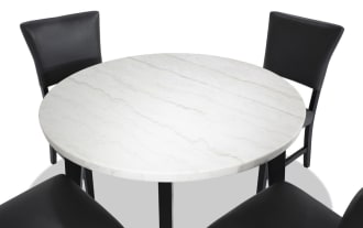 | Name | Elm 5 Piece Espresso, Marble & Gray Faux Leather Round Dining Set |