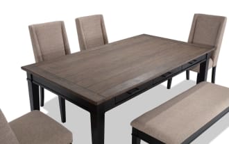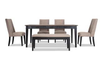 | Name | Montana 6 Piece Black & Beige Upholstered Dining Set with Storage Bench |