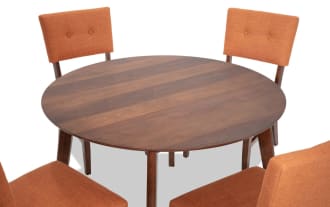 | Name | Bettie 5 Piece Walnut & Russet Upholstered Round Dining Set |