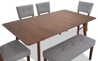 | Name | Bettie 6 Piece Walnut & Gray Upholstered Extendable Dining Set with Bench |