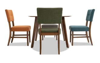 Name | Bettie 5 Piece Walnut & Multicolor Upholstered Round Dining Set |