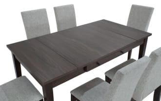 | Name | Homeworks 6 Piece Gray Upholstered Dining Set with Storage Bench |