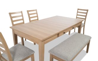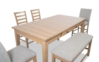 Name | Homeworks 6 Piece Gray Upholstered Dining Set with Storage Bench |