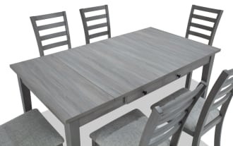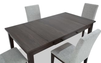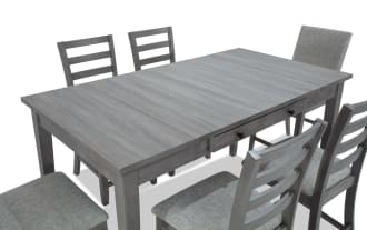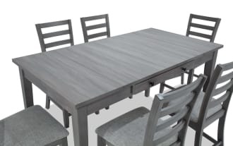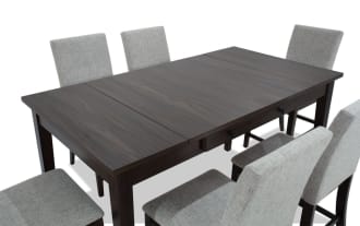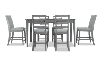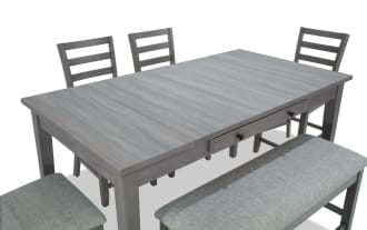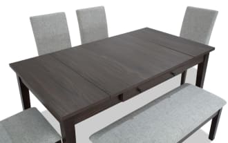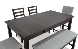 | Name | Homeworks 6 Piece Dark Brown & Gray Upholstered Counter Height Dining Set with Storage Bench |