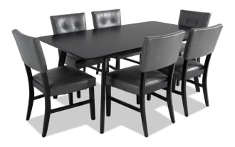 Name | Bettie 7 Piece Black & Charcoal Faux Leather Upholstered Dining Set |