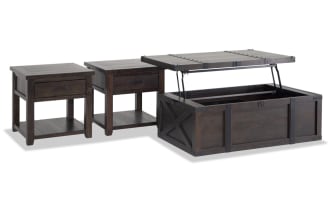 Name | Montana Brown Storage Trunk Coffee with End & Chairside Table Set |