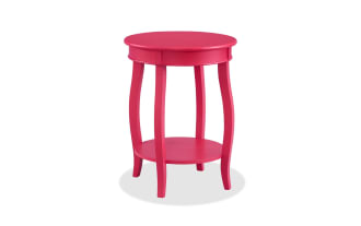 Add an eye-catching accent to any space, while adding in convenience at the same time! Made of MDF and solid wood, this round end table shows off a lovely finish and saber cabriole tapered legs. Store magazines, books or other reading materials on the bottom shelf with ease. The best part is that this accent is so versatile, you can put it in any room!