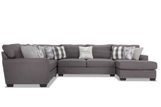 Cottage Chic Gray 150'' 4 Piece Right Arm Facing Chaise Sectional with Ottoman $2,498.00