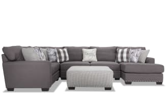Name | Cottage Chic Gray 150'' 4 Piece Right Arm Facing Chaise Sectional with Ottoman |