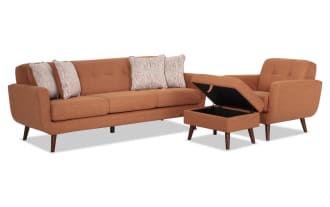 | Name | Bettie Russet 86'' Sofa, Chair, & Storage Ottoman |