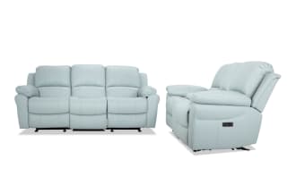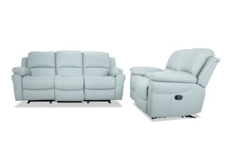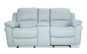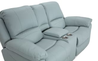 Storm Aqua Leather 85'' Power Reclining Sofa & 76'' Manual Gliding Console Loveseat $1,798.00