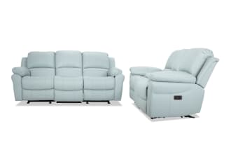 Name | Storm Aqua Leather 85'' Power Reclining Sofa & 76'' Manual Gliding Console Loveseat |