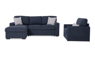Name | Playday Navy 93'' 3 Piece Left Arm Facing Pop-Up Sleeper Chaise Sectional with USB & USB-C Ports & Swivel Chair |